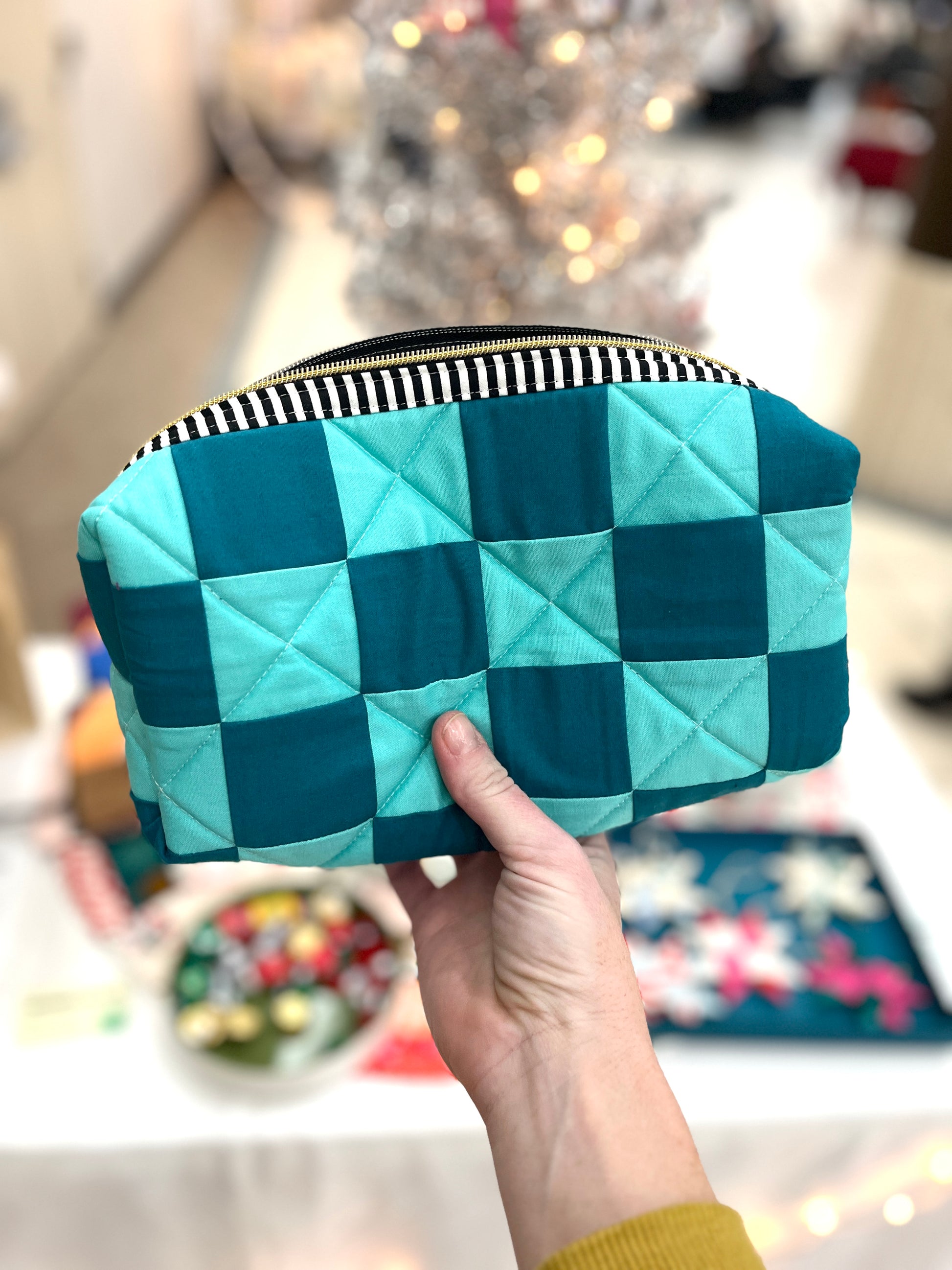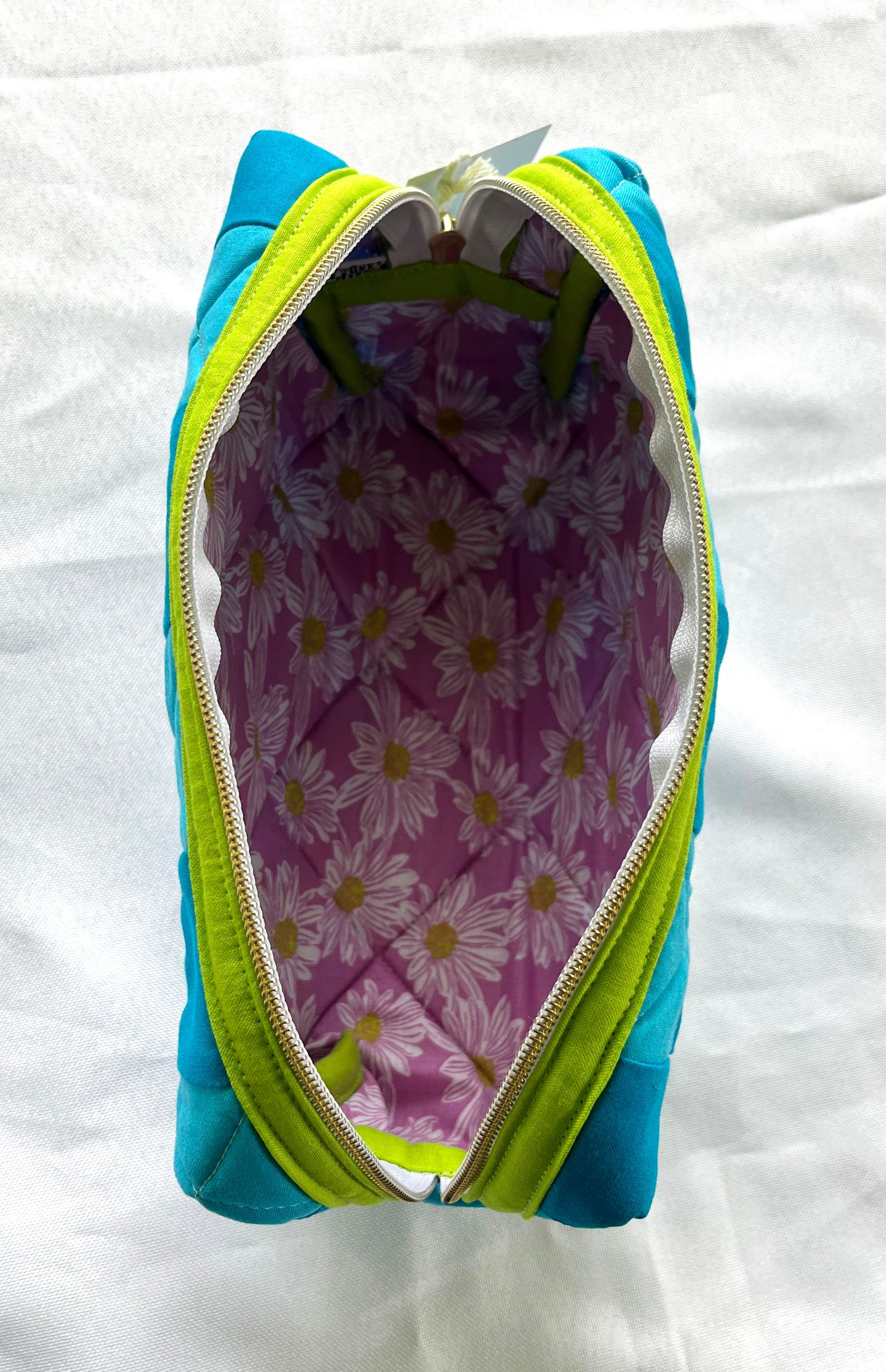 This quilted checkered boxy pouch is ideal for toiletries or make up storage. Use it everyday at home or take it with you on the go!